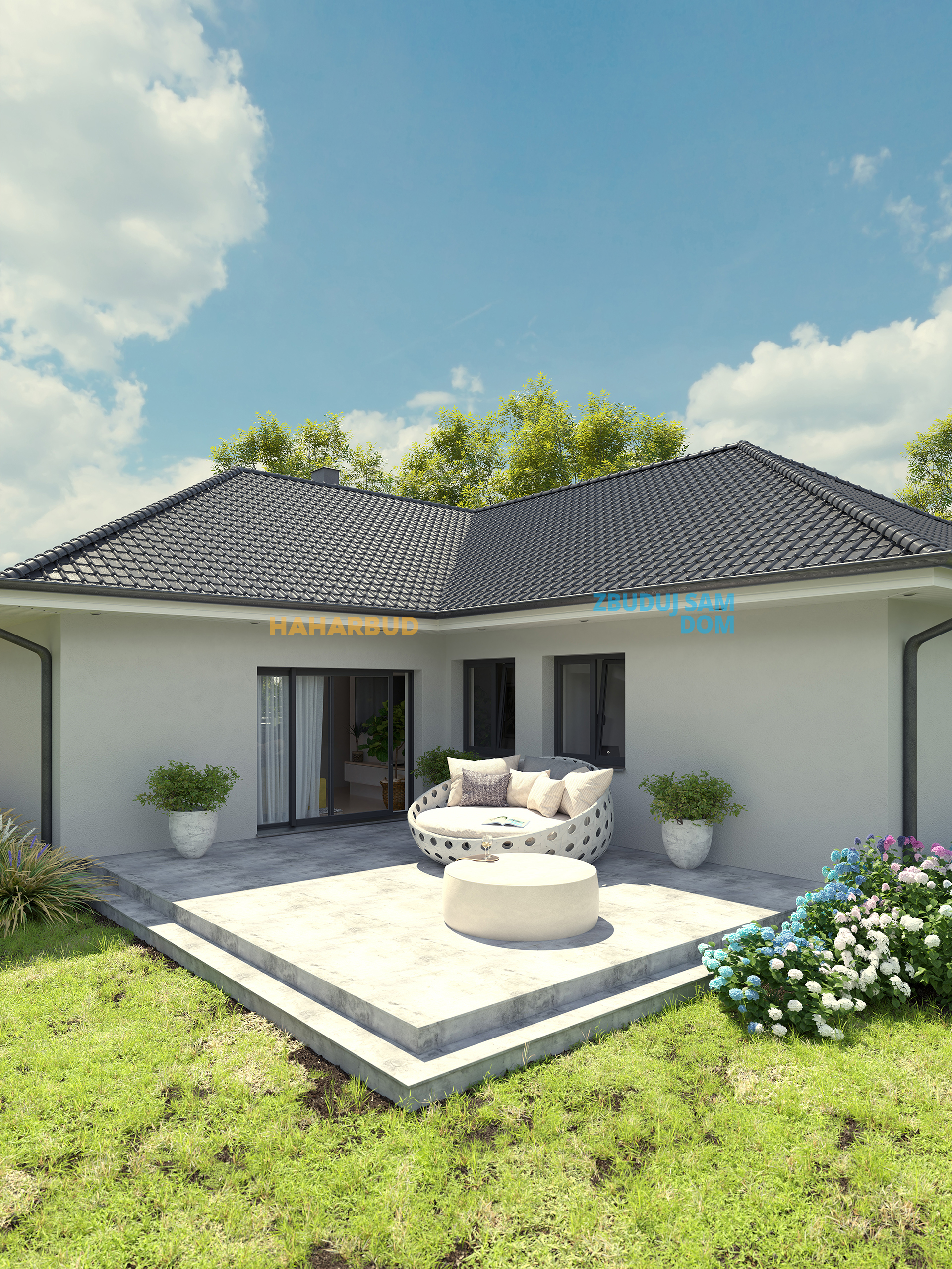 Dostępny jest w dwóch wariantach: wersji standardowej oraz odbiciu lustrzanym, aby idealnie dopasować się do Twojej działki.