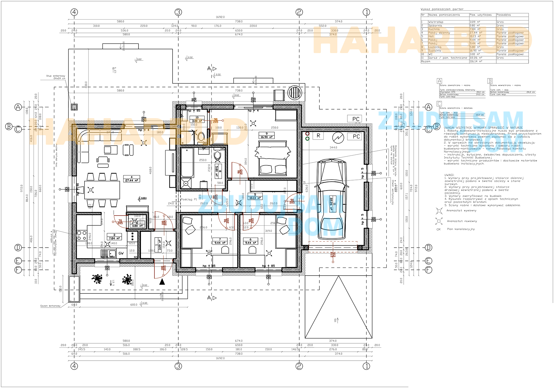 Powierzchnia całkowita budynku: 116,14 m2