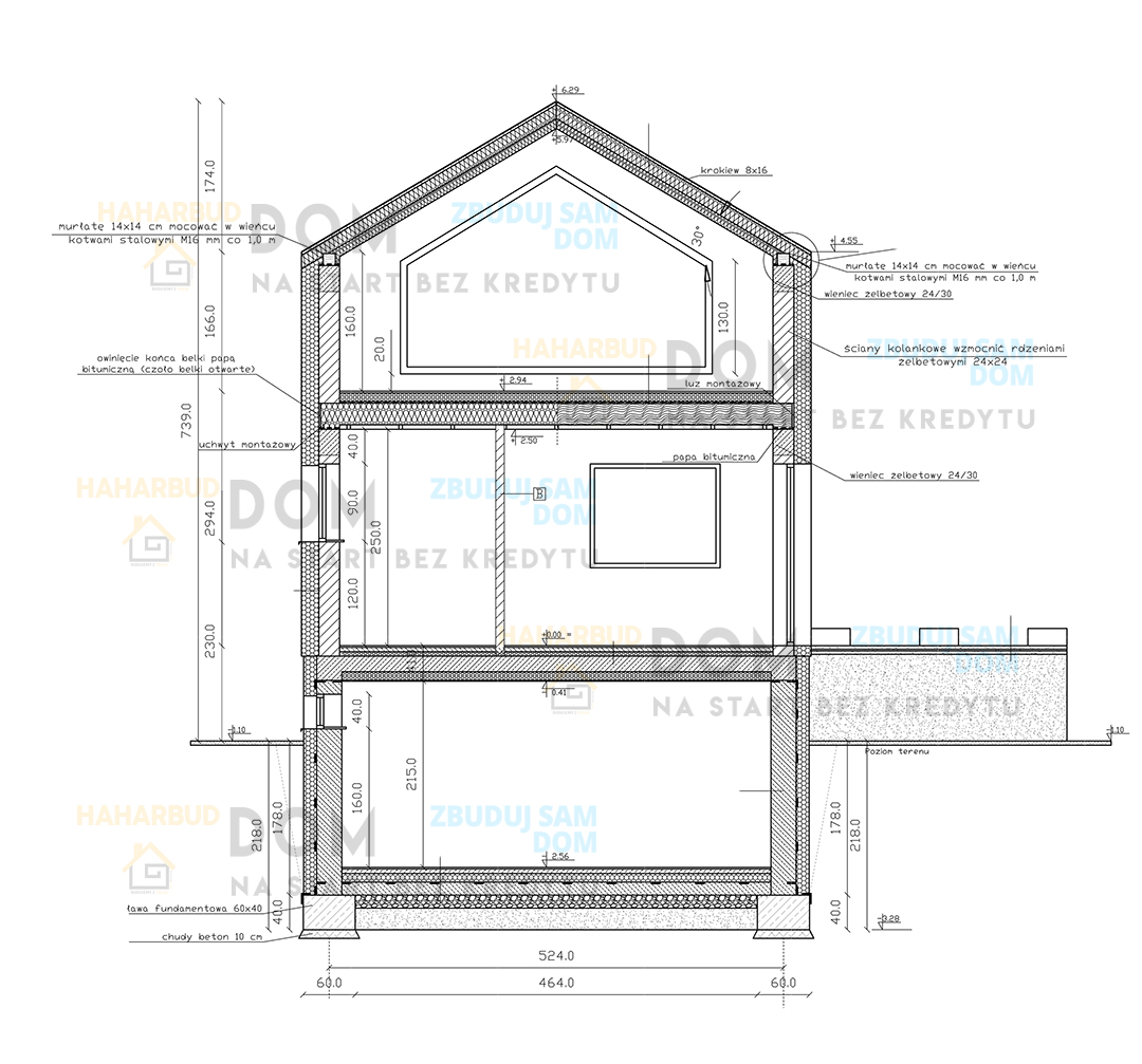 Dach: blacha na rąbek stojący, można zmienić na dowolne pokrycie przy adaptacji